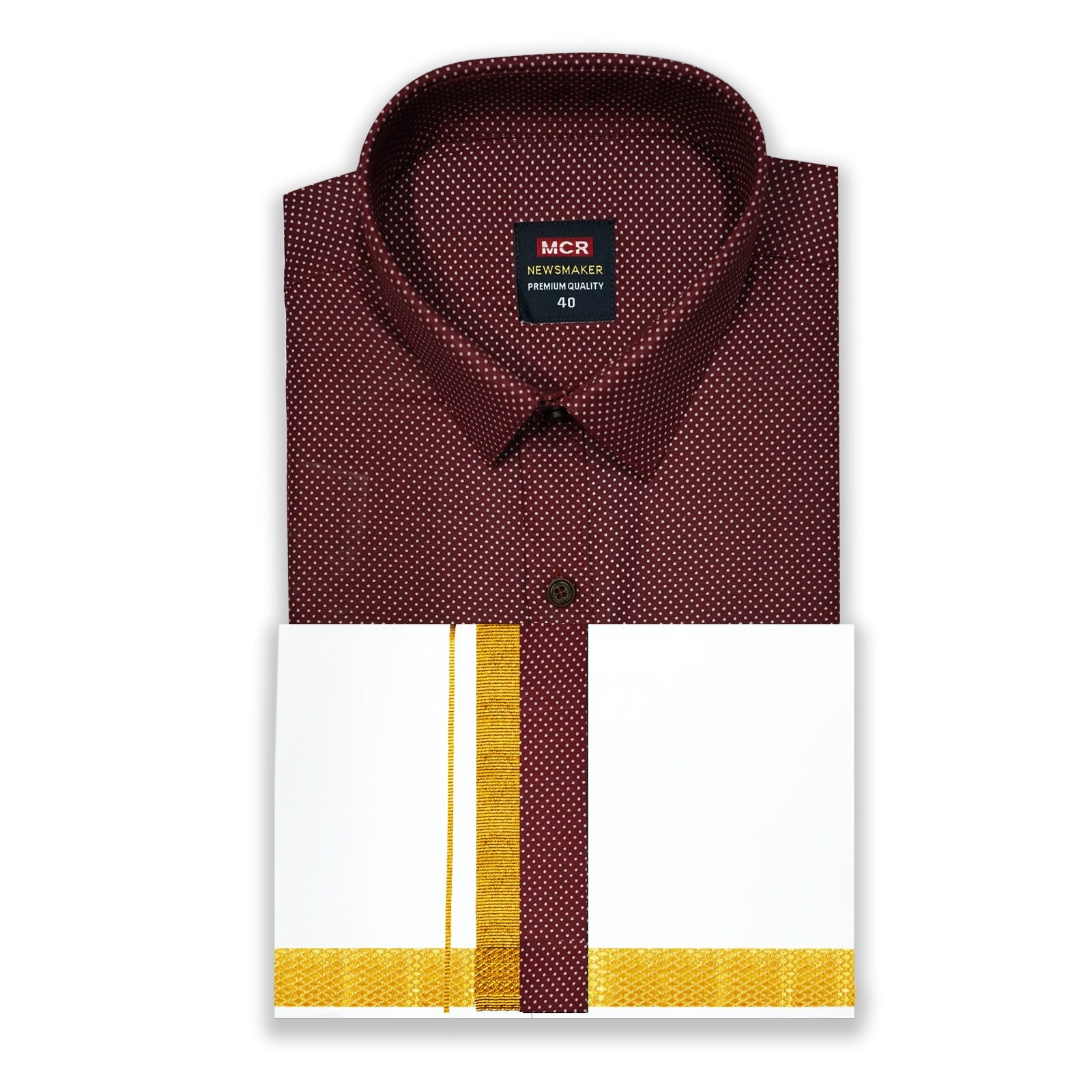 COSMIC PRINT FULL SLEEVE SINGLE SET is a mill printed Colour shirt with sigle set dhoti for men. If you are a man who always looking for comfort and ease of use in shirts, This perfectly manufactured set would be your go-to choice . This splendid set comes with a mill printed, full sleeve colour shirt along with a single dhoti which shows you stylish to others.