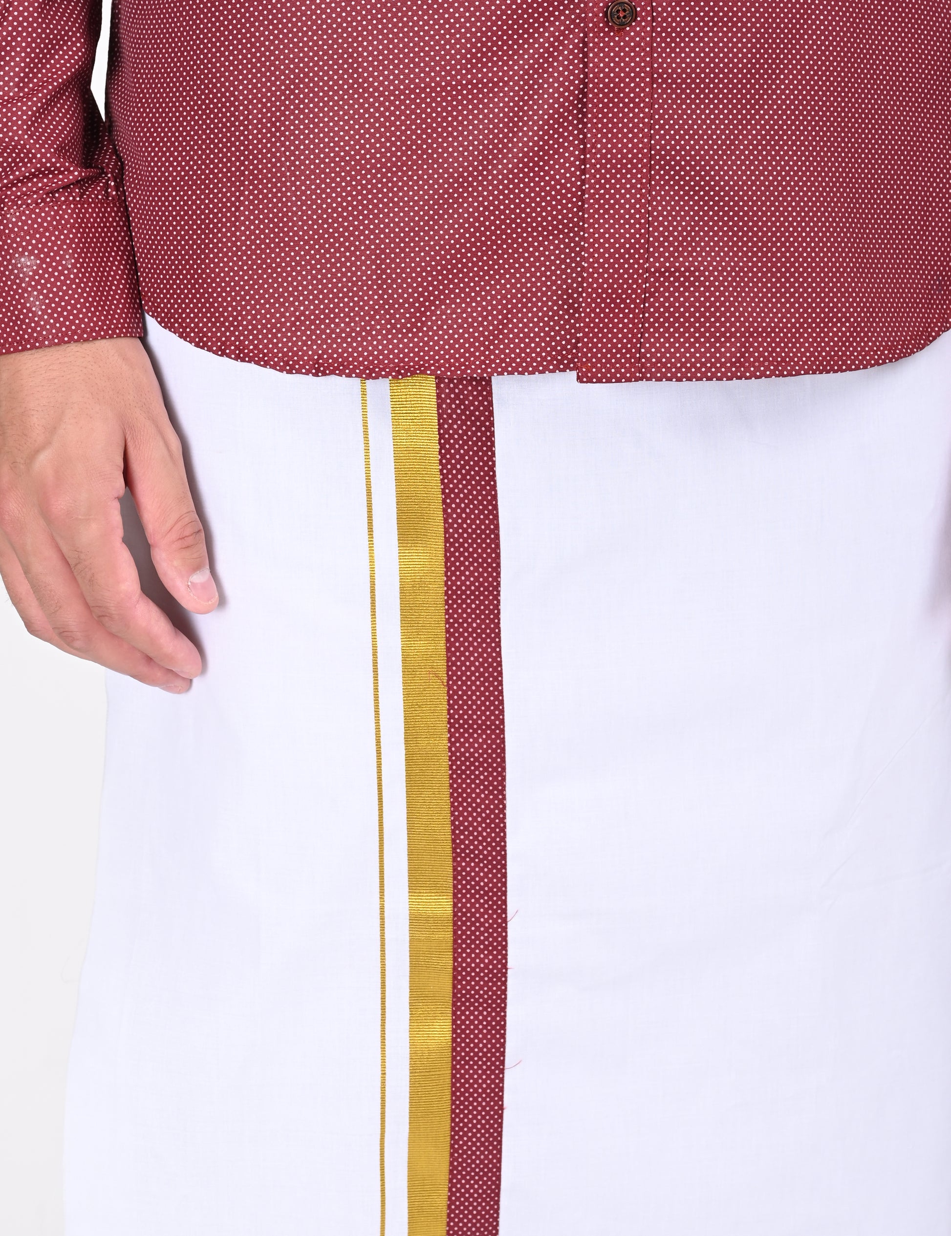 The Elegant Mill Print provides you a sense of elegance and so you can feel the Joy in you while partaking in celebrations. The Single set dhoti offers a flexibility and so you can wear it for festivals, weddings and other casual functions.