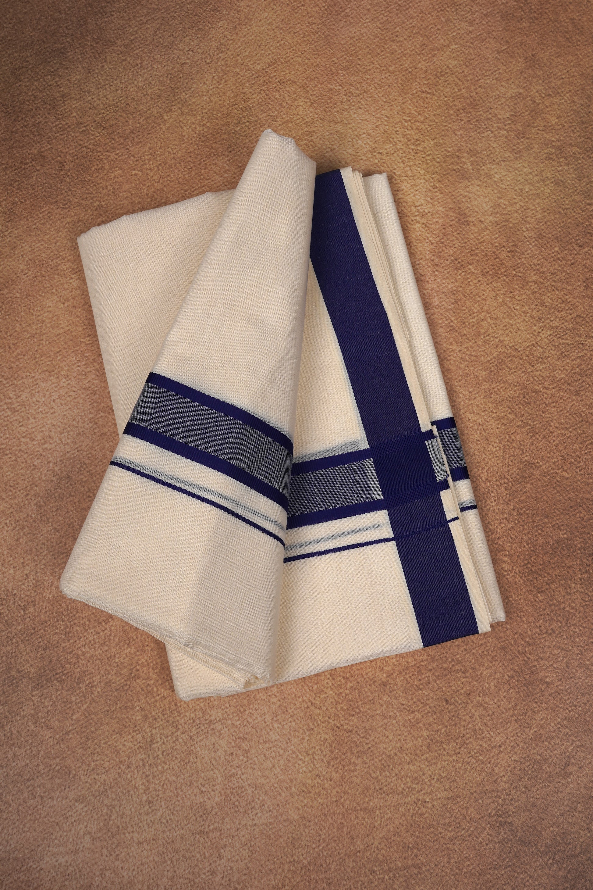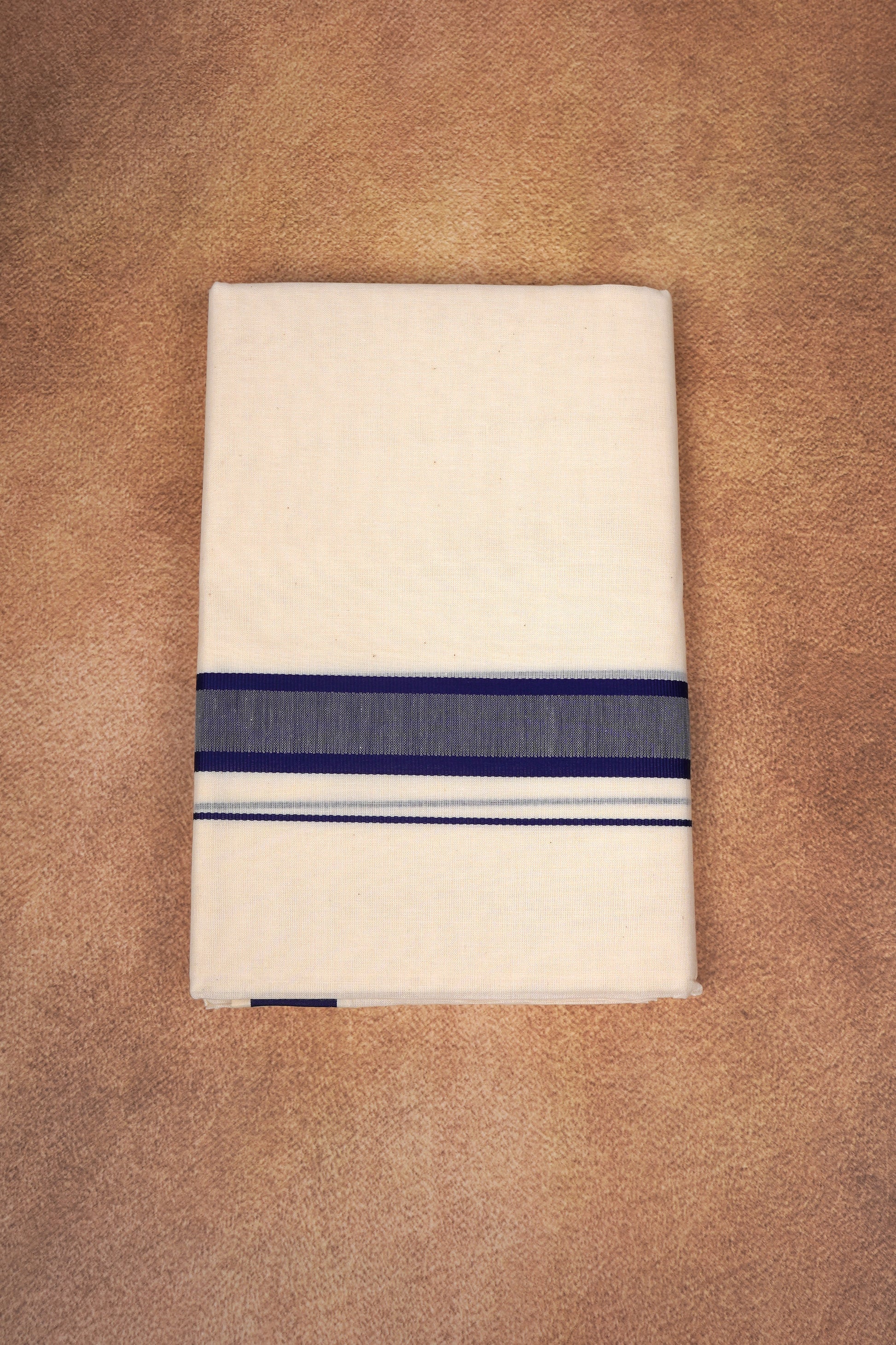 FD-174C CREAM DOUBLE DHOTHIE 3.80 MTR - Light Blue