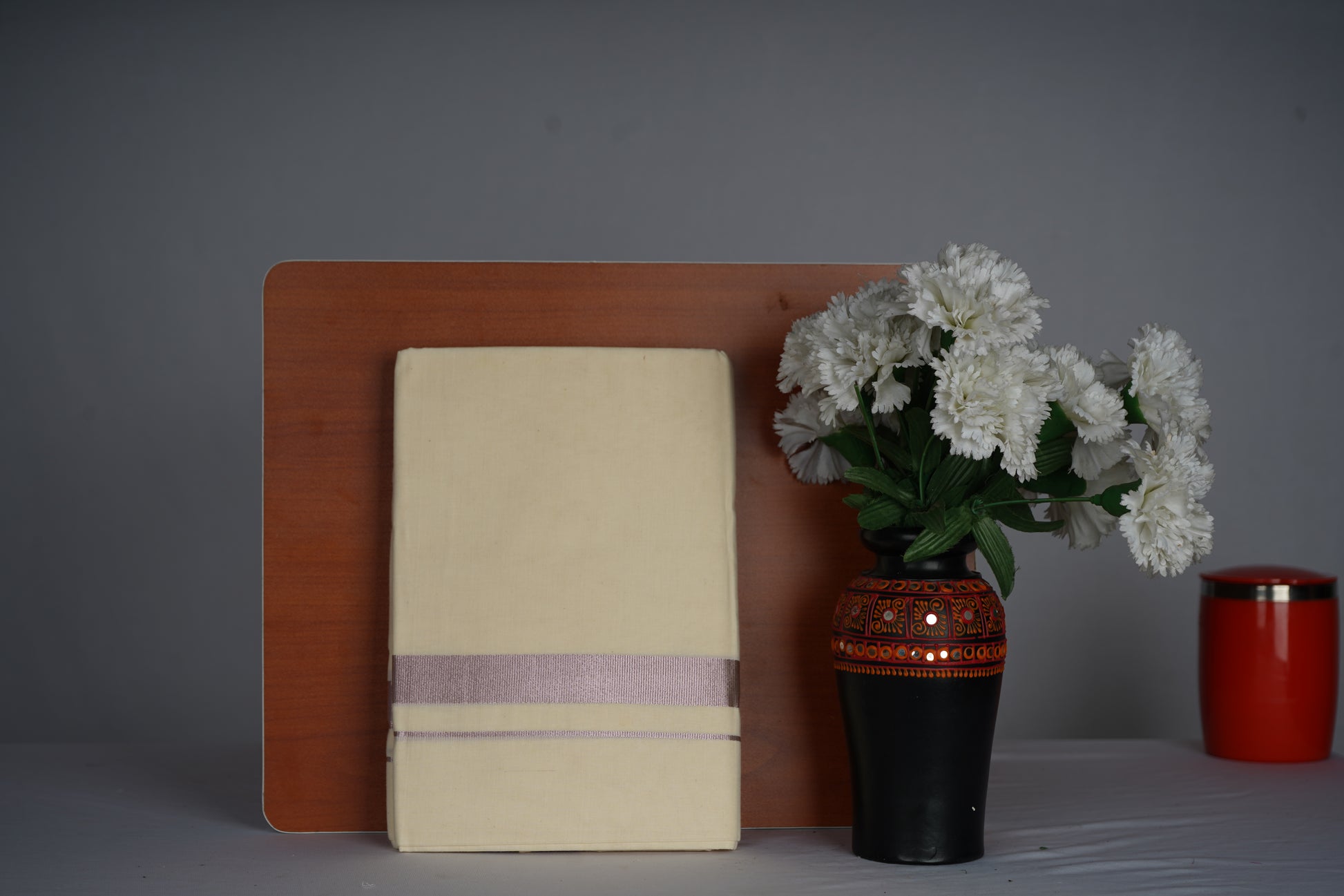 ROSE BORDER CREAM DOUBLE DHOTHIE FOR MEN -RGD-40C Buy 1 Dhothie Get 1 Dhothie Belt Free (Assorted colours only)